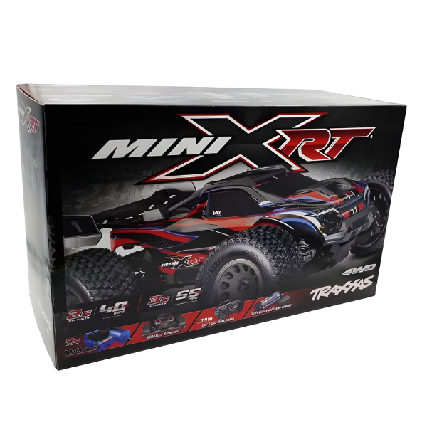 Mini XRTยฎ is a true rocket with full 1/10 scale Velineonยฎ 3s brushless power in a compact, take-anywhere size. Mini XRT lives up to its name with unprecedented 55+ mph speed and ferocious acceleration, backed by race-inspired engineering and unrivaled toughness. Mini XRT shatters all expectations with big-scale performance and toughness that fits in a backpack.